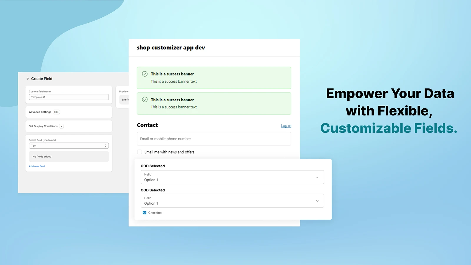 Customize checkout with fields, banners, and content to enhance engagement and align with your brand